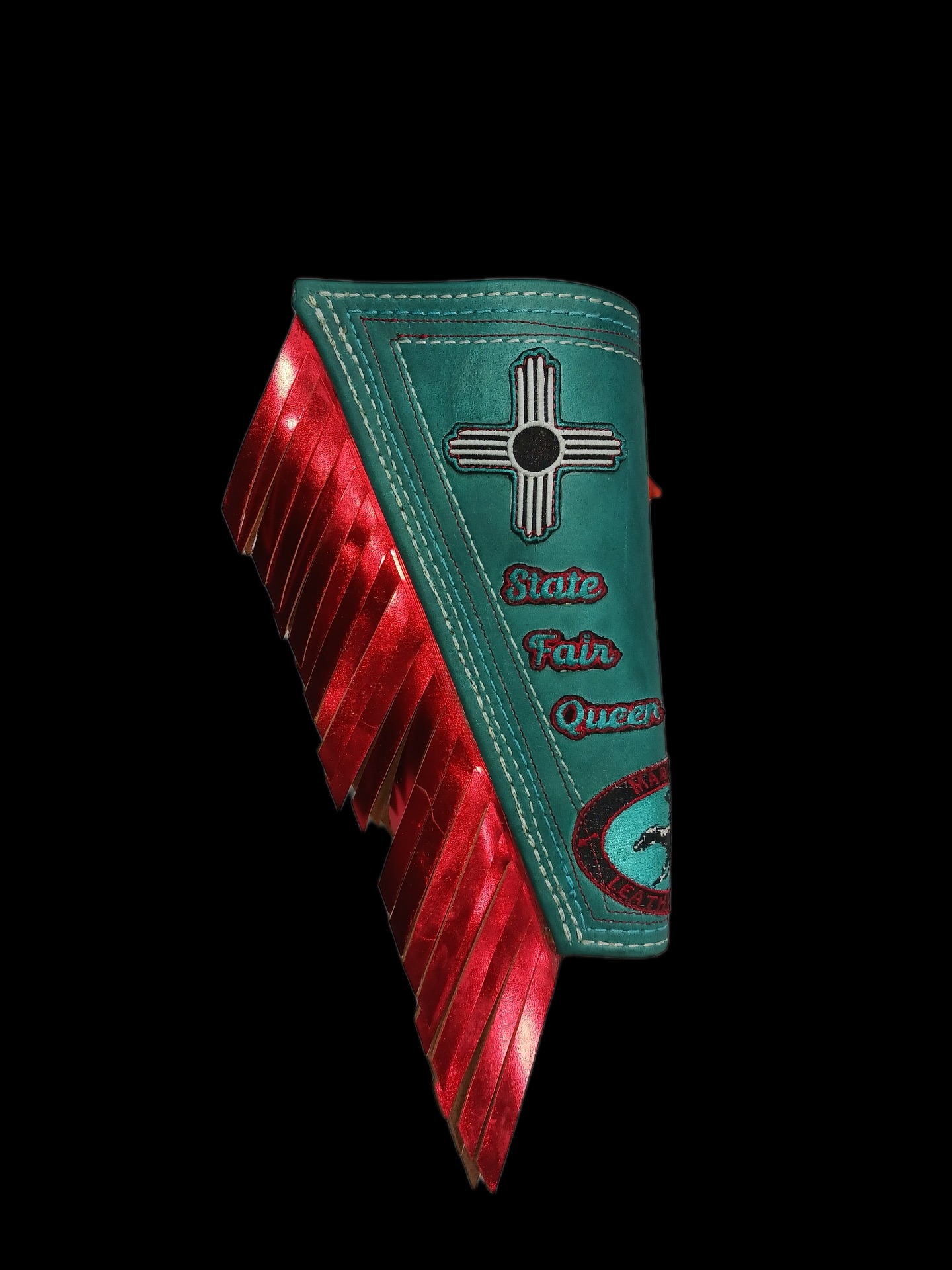 Choose your colors. Add your name. Honor your tribe, your state, your crown. Every panel is cut, stitched, and finished in our Santa Fe leather shop.