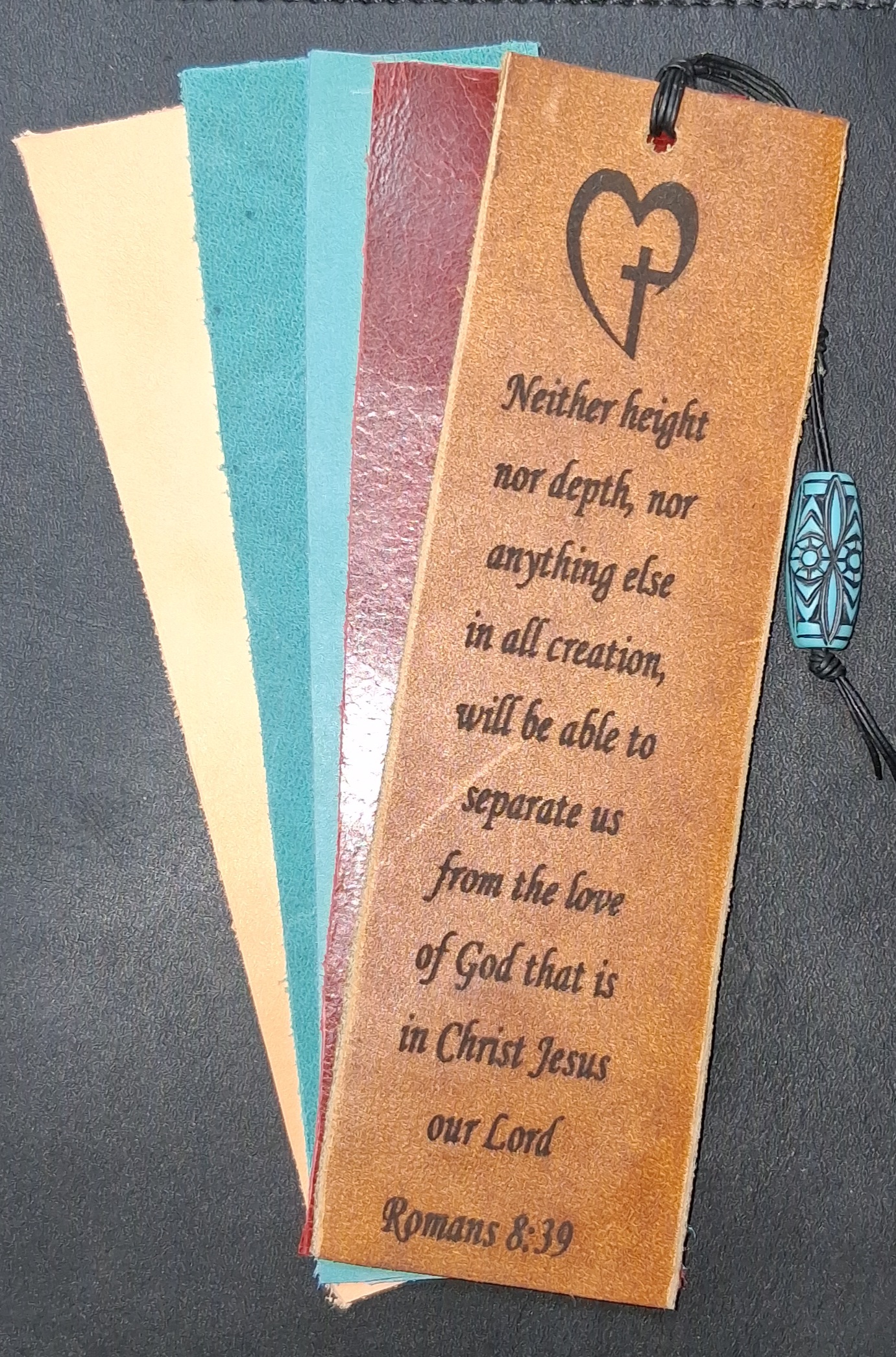 Crafted from premium genuine leather, these 2″x6″ bookmarks offer a rich palette of colors—featuring two distinct shades of turquoise alongside classic brown, natural, and a deep maroon. Each piece is designed to age beautifully while marking your place with timeless character.